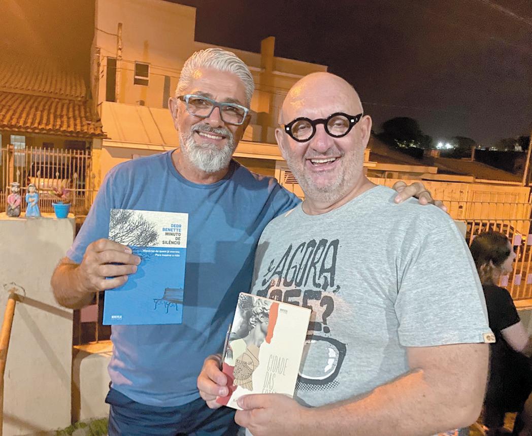 LANÇAMENTO - Os escritores Márcio Blanco Cava e Deda Benette (foto) promoveram uma noite de autógrafos de seus livros “Cidade das Estátuas” e “Minuto de Silêncio”, no Carlota Bar. Márcio é jornalista e atuou em diversos veículos e mídias; já Deda também é jornalista, mestre em Comunicação e criador do projeto O Deda Questão, que se transformou em um blog. Ambos são autores de outros livros.