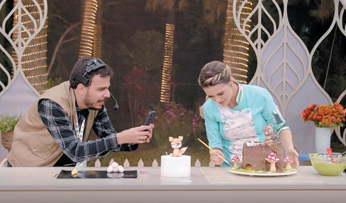 cadeira e assistem ao epi sódio “Oficina de Madeira” comentando as cenas com muito bom Tambémhumor.marca presen ça na atração, Glacevaldo, que não vai passar pano para os confeiteiros e se di verte com suas interações na tenda mais doce do País. O “Bake Off Brasil – Cereja do Bolo” vai ao ar todos os sábados, no SBT.