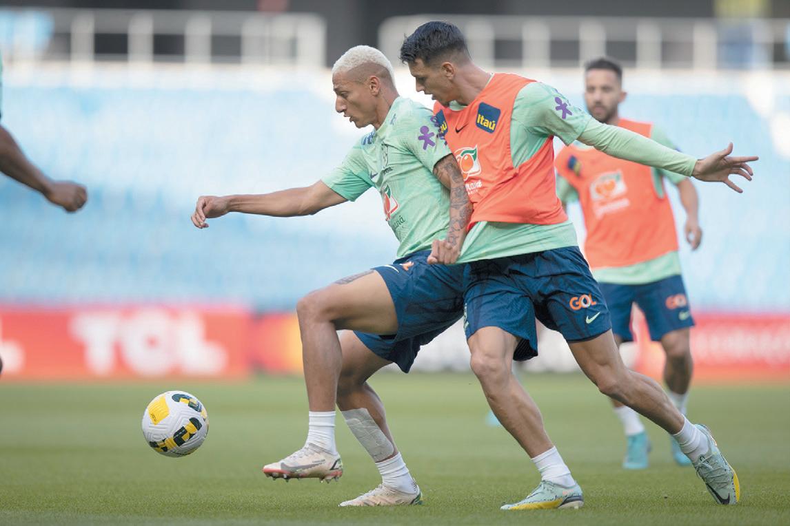 do, Guilherme Arana, do Atlético Mineiro, que sofreu uma grave lesão e não estará no Qatar.“Mando aqui força para o Guilherme Arana. Man dei uma mensagem para ele. Passei por isso em 2018 quando fui convocado pela primeira vez e, uma semana antes do jogo, sofri uma le são. A adversidade faz a gen te mais forte”, comentou.