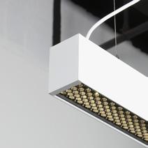 生蜂窝网格元素,与可变色RGBW系统,可根据使用者 的需求进行不同颜色的更换,赋予了产品更强的生命力。 深度防眩的灯具设计降低了眩光对眼睛的影响,让使用者 能在一个舒适、健康的环境中工作。