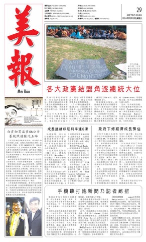 威(JokoWidodo)角逐總 oWidodo)角逐總 總 統大選。佐科威已獲總統 大 選入 大選入場券。 入 場券 場券。 券 另外,佐科威的勁敵, 大印尼運動黨的候選人普 拉伯 拉伯沃(PrabowoSubian 伯 沃(PrabowoSubianto)和從業黨黨主席巴克 利(Aburizal Bakri Bakrie) krie) e) 目前也在積極尋找政黨 結盟,為角逐總統大位鋪 路,力 路,力拼佐科威。 力 拼佐 佐 科威 佐科威 佐科 威。