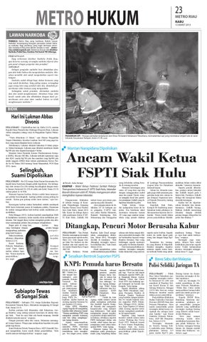 KNPI: Pemuda harus Bersatu Polisi Selidiki Jaringan TA PEKANBAPemuda sebagai RU - Selaku wagenerasi penerus dah tempat berbangsa harus bernaungnya para satu di semua lini pemuda, Komite dan termasuk daNasional Pelam olahraga,” tumuda Indonetur Agung didampsia (KNPI) saningi Wakil Ketua gat menyayangInformasi dan Kokan terjadinya munikasi KNPI insiden bentrok Pekanbaru, Rino sesama penduSyahril. Agung Nugroho kung PSPS PeUntuk itu, kata kanbaru. Akibat bentrok itu, Agung, sudah saatnya semua seorang suporter bernama Te- pihak melupakan perbedaan gas Saputra (15) tewas. dan kembali kepada SumpKetua KPNI Pekanbaru, ah Pemuda dan mengamalAgung Nugroho SE mengatakan, kannilai-nilai yang terkandkejadian tidak seharusnya terjadi. ung didalamnya. “Jadi untuk “Sesama pendukung PSPS yang menghindari jangan terjadinmerupakan pemuda Indonesia, ya peristiwa serupa untuk kedmari kita saling menghargai,” ua kalinya, sebaiknya suporter ujar Agung, kemarin. PSPS berkumpul dalam satu Agung menyampaikan, wadah, sebab tujuan dan perkalau merasa sama-sama juangannya sama yakni memmemiliki PSPS, harusnya ajukan PSPS,” tutur Agung. pemuda kompak dan saling Menurut Agung, bila itu mendukung serta menghar- dilakukan maka pemuda-pegai. “Ini sangat ironis, selaku muda yang bergabung dalam
