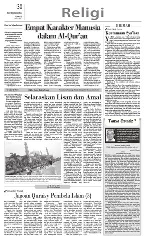 Tanya Ustadz ? Harian Pagi Metro Riau bekerjasama dengan As Shofa membuka ruang tanya ustadz bagi kaum muslimin dan muslimat. Pertanyaan dapat dilayangkan ke email: andie_pku@ yahoo.com atau boychandra79@gmail.com. Atau kirim ke nomor 085355841875. Rubrik ini diasuh oleh: Ust. Qaimul Hakky dan H Budi Kurniawan Lc.