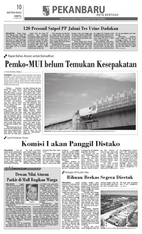 PEKANBARU - Anggota mall adalah sistem pajak parkir. m DPRD Pekanbaru menilai aturan Sehingga ketentuan tersebut S yang tertera pada karcis parkir ttelah disepakati bersama Dinas kendaraan bermotor di mall tidak Perhubungan Kota Pekanbaru. P adil. Pasalnya, di dalam karcis “Mereka minta kita tanyatersebu, pemilik kendaraan yang kkan kepada Dishub Pekanbaru, mengalami kehilangan bendamakanya kita akan panggil m benda di kendaraannya seperti Dishub Pekanbaru dalam pekan D helm dan lain sebagainya, pihak iini. Karena ini perlu diluruskan. mall tidak bertanggung jawab. Kita tak ingin aturan itu hanya K Sementara itu, ketika karcis merugikan masyarakat,” kata m parkir hilang, pemilik kendSabarudi. S Sab Sa abbarruddi ST araan dikenakan sanksi Rp5 ribu Ditambahkannya, dalam hingga Rp20 ribu. hhearing yang akan direncana“Kita akan berencana melakukan hear- kan tersebut, juga melibatkan pihak pemilik ing dengan Dinas Perhubungan Kota Pekan- mall serta instansi terkait dalam menetapkan baru. Sebab, hal ini sangat tidak adil. Masa Peraturan Pajak Parkir mall tersebut. Sebab, karcis saja hilang, kita kena denda. Kita tak kondisi yang seperti itu telah lama terjadi dan mempermasalahkan jumlah uang sanksinya, selama itu juga masyarakat terus dirugikan. namun yang kita permasalahkan, aturan “Kita akan pertanyakan aturan yang mereka yang sepihak begitu dan sangat ditetapkan mall ini, sebaiknya aturan itu merugikan kita,” ungkap Sekretaris Komisi sama-sama menguntungkan, kalau memang IV DPRD Kota Pekanbaru, Muhammad ditetapkan karcis hilang pengendara disanksi, Sabarudi ST, Jumat (14/7). diikuti juga dengan aturan, jika barangKetika politisi PKS ini mempertanya- barang yang ada di kendaraan atau bahkan kan kepada pihak manajemen mall, dike- kendaraan hilang, pihak mall juga disanksi,” tahui bahwa sistem perparkiran yang ada di imbuhnya. (riki rahmat)