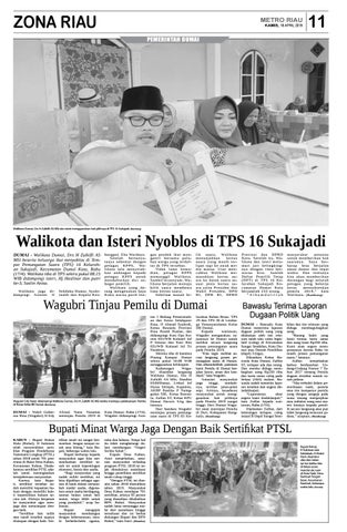 ten I Bidang Pemerintahan dan Kesra Sekdaprov Riau, H Ahmad Syahrofi, Ketua Bawaslu Provinsi Riau Rusidi Ruslan, dan didampingi Kasi Ops Korem 031/WB Kolonel Inf P Sitorus dan Kasi Ren 031/WB Kolonel Inf Tri Handoyo. Mereka tiba di bandara Pinang Kampai Dumai sekira pukul 10.00 WIB menggunakan helikopter. Kedatangan Wagubri disambut langsung Walikota Dumai, Drs H Zulkifli AS MSi, Dandim 0320/Dumai, Letkol Inf Horas Sitinjak, Kapolres, AKBP Restika P Nainggolan SIK, Ketua Bawaslu, Zulfan ST, Ketua KPU Dumai Darwis SAg dan lainnya. Dari bandara Wagubri meninjau proses pemungutan suara di TPS 03 Ke-