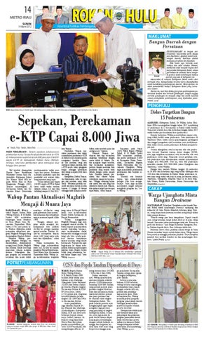 Sementara pada Jumat (16/3) Wakil Bupati (Wabup) Rohul, Ir H Hafith Syukri MM memantau pelaksanaan proses perekaman e-KTP di Kecamatan Kunto Darussalam, Kecamatan Pagaran Tapah Darussalam dan Kecamatan Ujungbatu. Wabup ingin memastikan pelaksanaan perekamana data berjalan semestinya. “Kendati ada kendala teknis, tapi alhamdulillah petugas kita bisa mengatasinya. Saya juga melihat masyarakat sangat antusias mengikuti program ini,” kata Wabup. *