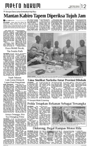 Unit (Kanit) Retan Siak Hulu, Kaserse Kriminal bupaten Kampar, (Reskrim), Ipda dipepet dua orang M Bahari Abdi, pria tak dikenal di Selasa (19/1). depan Sekolah Menengah Kejuruan Menurut Abdi, peristiwa naas itu (SMK) Pertanian. dialami korban, Pelaku mengMinggu (17/1) klakson korban sekitar pukul 22.00 dan meminta korBahari Abdi WIB. Korban yang ban menghentikan akan pulang ke rumahnya di sepeda motornya. “KorJalan Kubang Jaya, Kecama- ban mengira dia diklakson