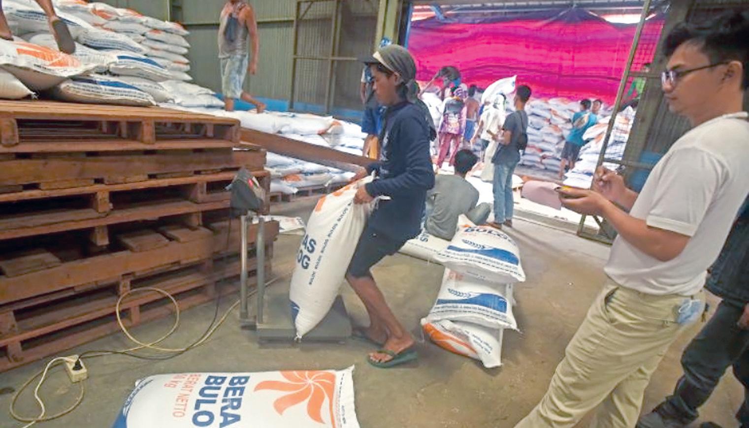 PEKERJA menimbang beras impor Vietnam yang tiba di Gudang Bulog Subdivre Serang, di Serang, Banten, Senin (20/2). (antaranews.com)
