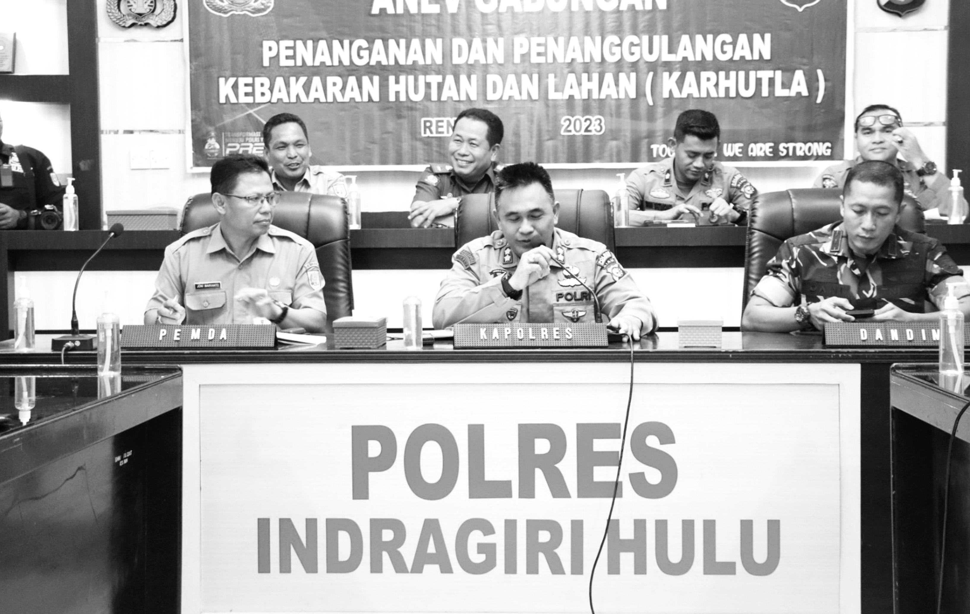 K APO L RE S INH U AKBP Dody Wirawijaya, S.I.K membuka dan pimpin langsung kegiatan Analisa dan Evaluasi (Anev) Gabungan Penanggulangan dan Penanganan Karhutla 2023d di Kabupaten Inhu. (mun)