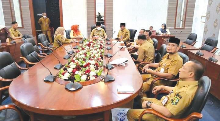 Penurunan Stunting Kabupaten Rokan Hulu dengan BKKBN Provinsi Riau, Senin (27/3) di rumah dinas Bupati, Komplek Pemda Pasir Pengaraian. (RiauSmart.com)