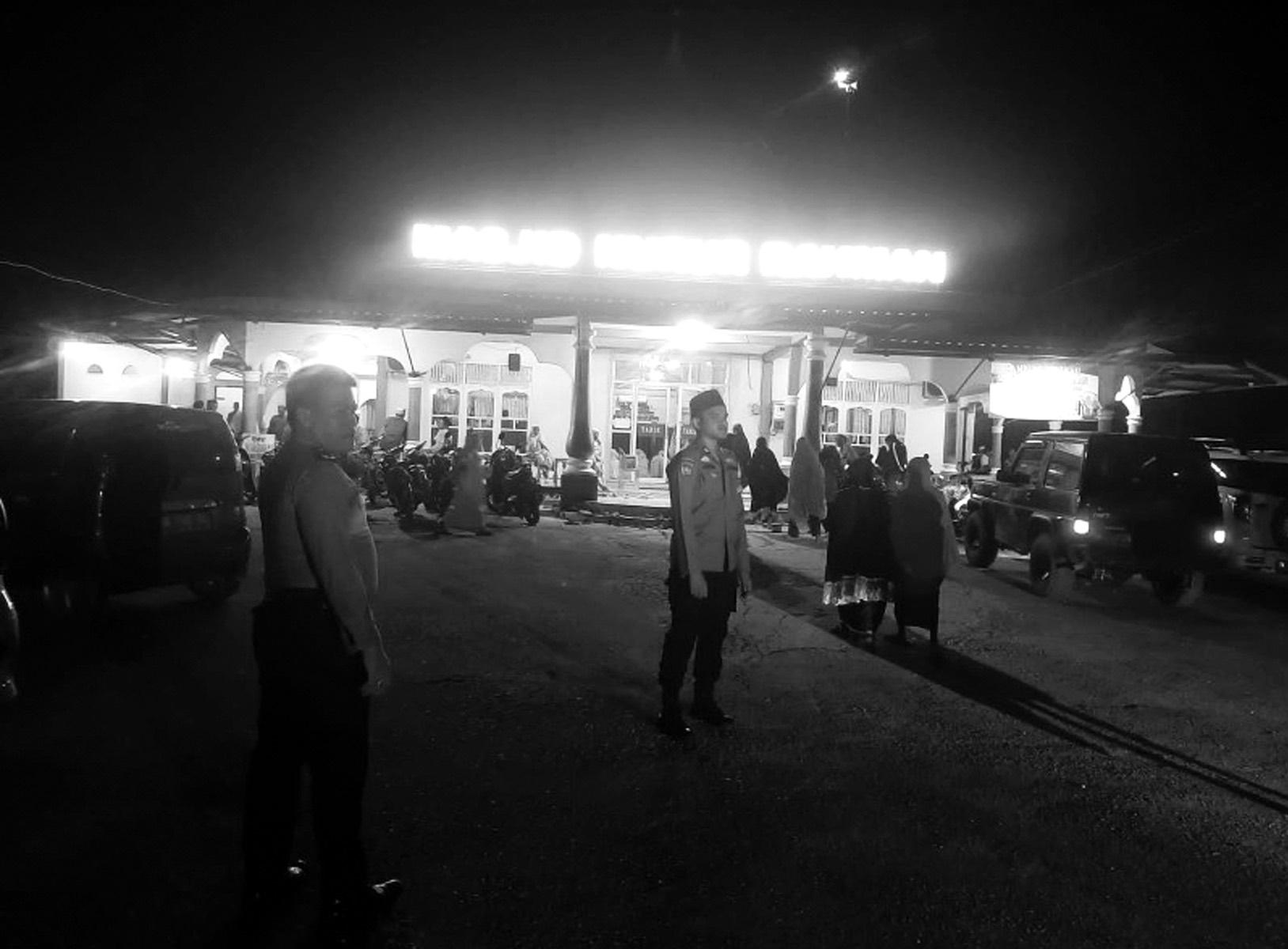 S ELAMA BULA N R AMA DH A N, personel kepolisian dari Polres Rokan Hulu ditempatkan di lingkungan masjid guna memberi keamanan bagi jamaah dalam menjalankan ibadah. (RiauSmart.com)