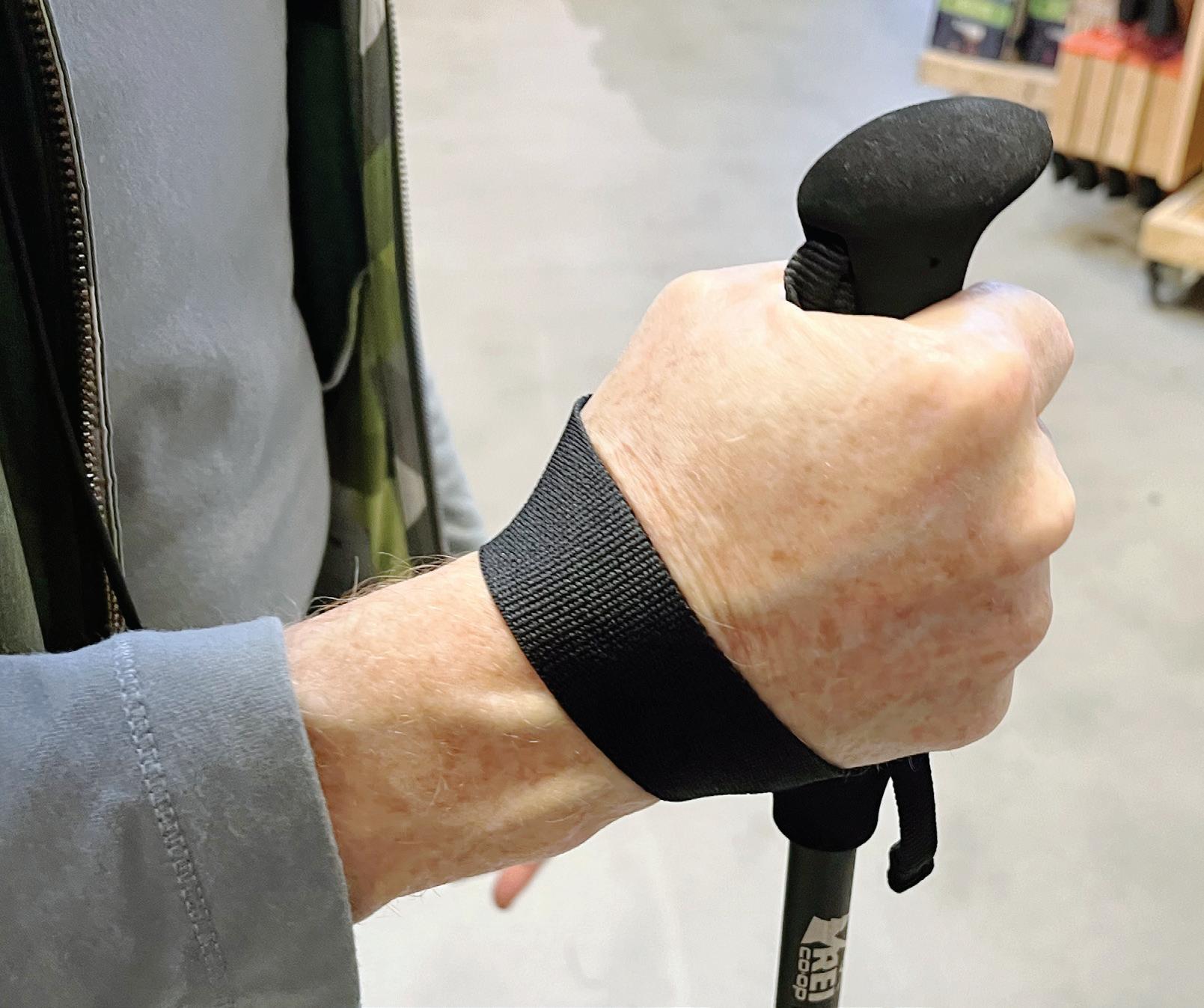 If you put your hand through the loop from the top, it can keep you from losing your pole, but you’ll miss using the strap to take weight off your body. Put your hand in from underneath.