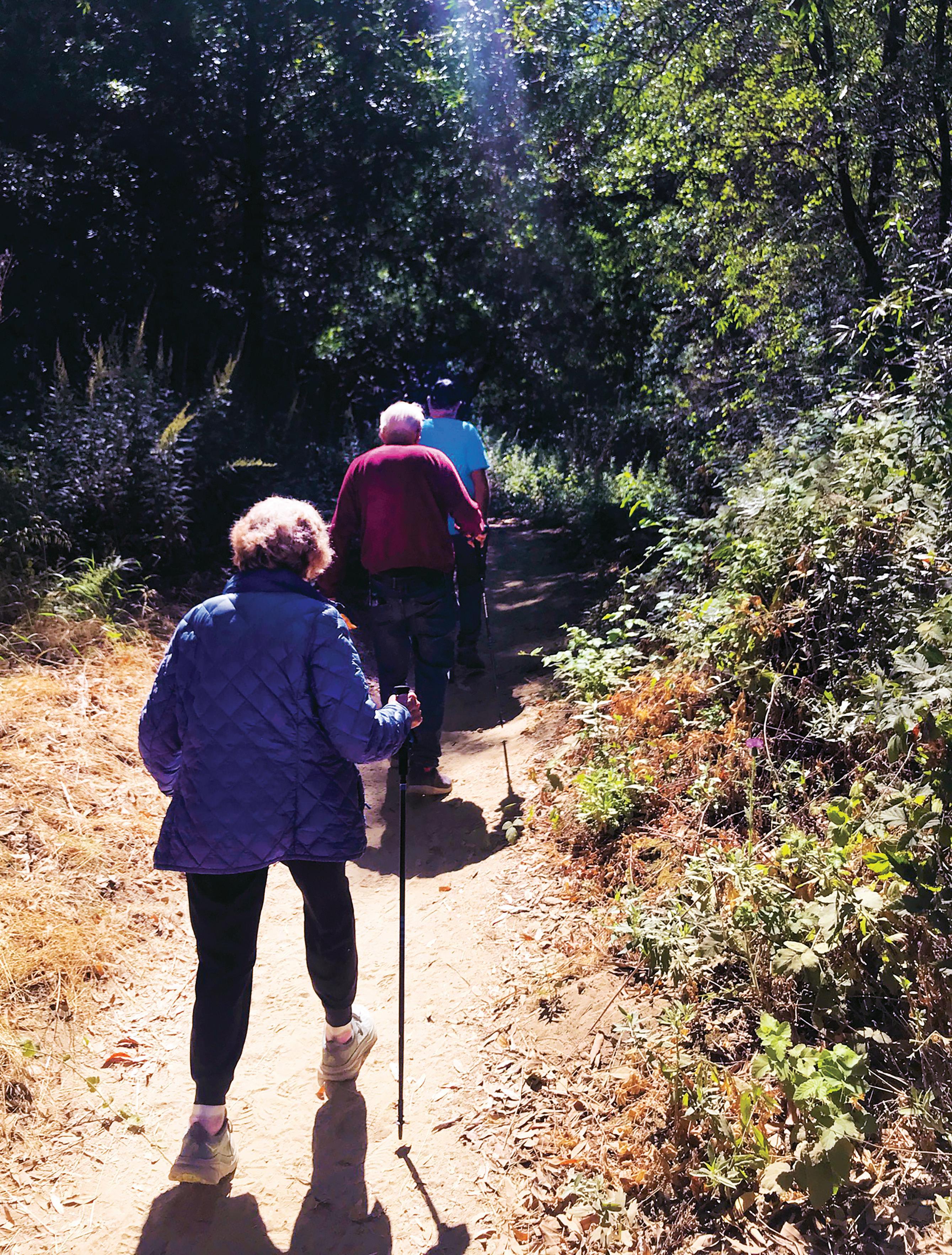The 93-year-old who is walking with me on Pipeline Road in Nisene Marks State Park is legendary marathon runner and hiker Katherine Beiers. She can keep up with everyone in our hiking group and can walk away from most. When I wish Katherine a happy 93rd birthday, the word “93rd” comes out louder than I had wanted. Katherine smiles, leans on her trekking pole and says, “Richard, the whole idea with longevity, the one essential thing we have to do to survive: don’t fall down. Falling down is the beginning of the end.”