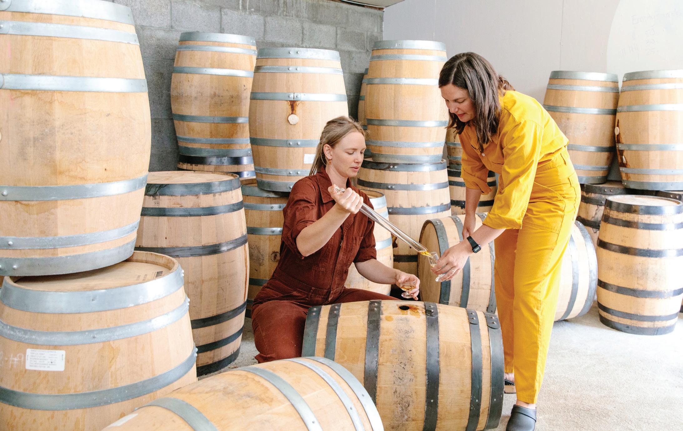 They decided to focus on bourbon and gin. “The idea for the bourbon was grassto-glass Californian,” said Peebles. But they knew their bourbon would take four years to age. So, they decided to make gin, both to “change the perspective of gin,” said Brown, and to begin building their brand.