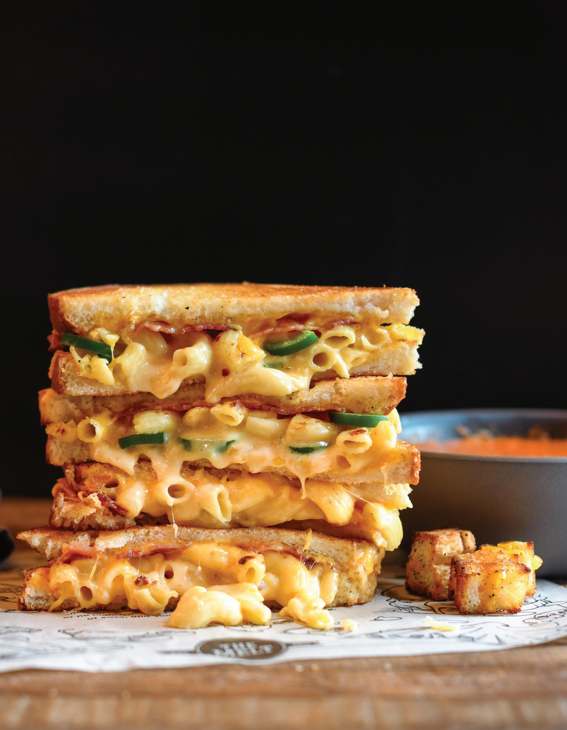 it’s stuffed with tons of melted cheddar or the classic Melty Mac that achieves textural contact with a topping of cheddar and toasted bread crumbs astride pillowy pasta—add kick by choosing the Garlic Chicken Bacon Mac—or choose from a boatload of sandwich variations such as Three Cheese Classic, Patty Melt, Mac Daddy (mac ‘n’ cheese, aged cheddar and smoked bacon in artisan French bread) and more. Anyone who believes “melt” and “cheese” are codependent will find their tribe at Melt.