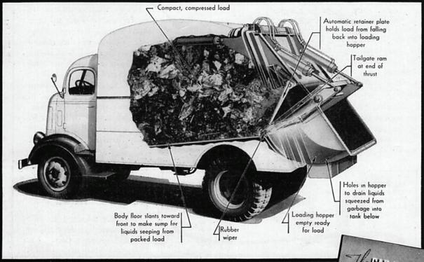 Garbage is a manufactured product, created when otherwise recoverable resources are mixed and mashed together. Most rooms in every building in the whole country have a basket where this manufacturing begins. Discarded resources are put in one by one, then dumped into a larger bin, and then into a truck with a more modern body based on this one. A hydraulic piston smashes everything together The objective is to pack in more cargo before the truck has to be driven to where it can dump onto the land, to be covered in a “sanitary“ way. Liquids leach out and make their way into the planet's