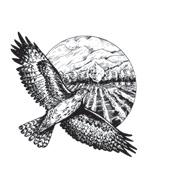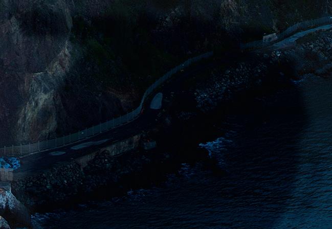 meandering through green rolling hills, sharp gray clusters of rock, flowering orange poppies—depending on the season, of course—and Breugel-esque black-andwhite cows. I often, on my drive out, like to see how many hawks I count sitting meditatively on the telephone wires. The most I ever counted was eight.