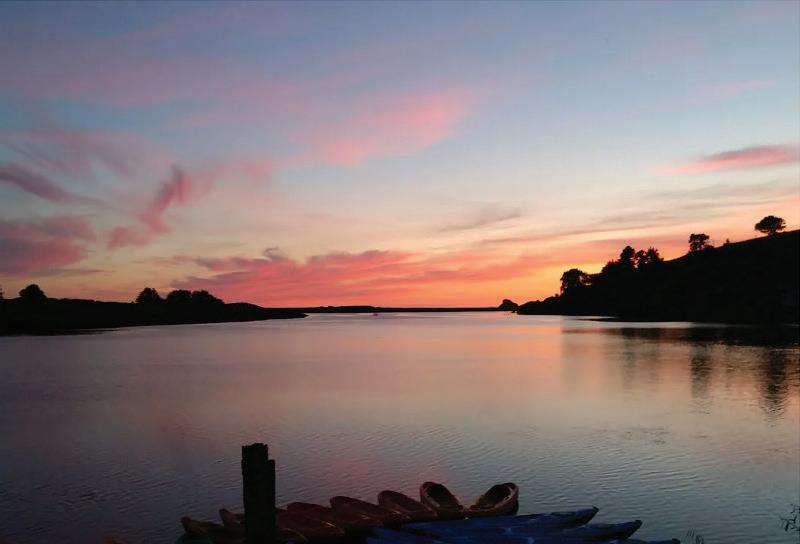 a squadron of squawking geese speeding towards a hot-pink sunset, the smell of a misty dawn, a raccoon that rises on its hind legs to inspect us while we gaze at the stars, the smell of a distant fireplace and the sound of church bells.