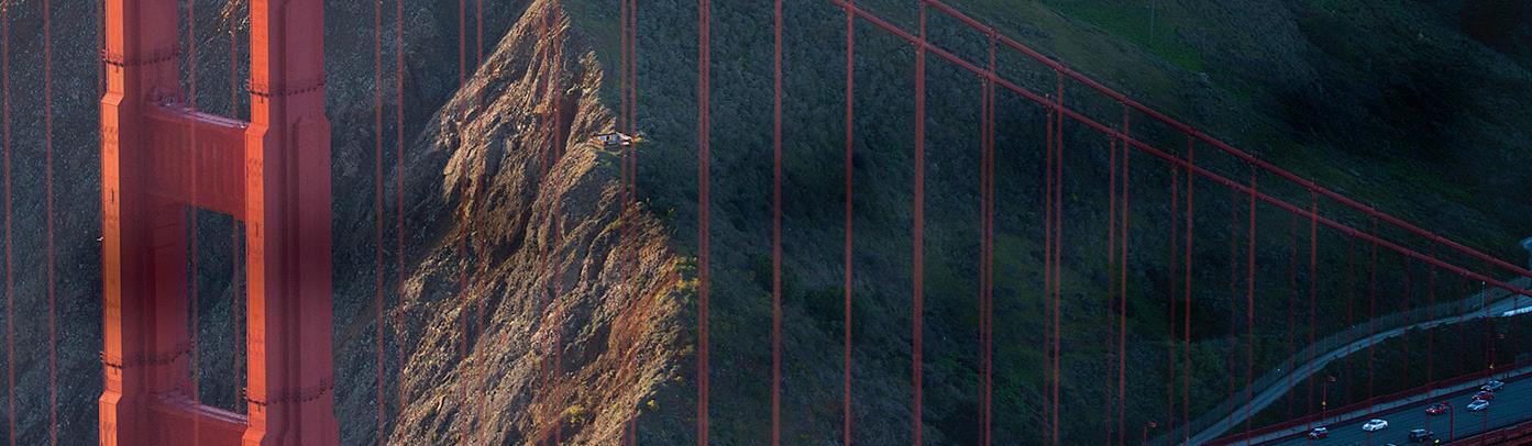 To see the bridge, he rides the Marin Headlands up and over Mount Tam, and over Muir Woods.
