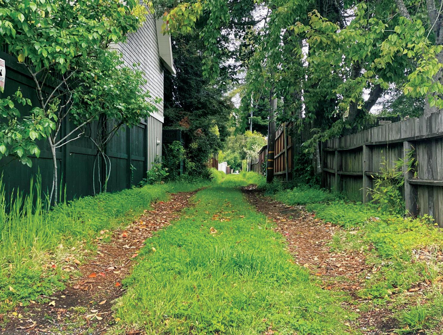 alleys is delightfully quaint and old-fashioned. The backyard barns, old sheds with sliding wooden doors, boarded-up shacks, cabins and any number of interestingly constructed garages all harken back to another age.