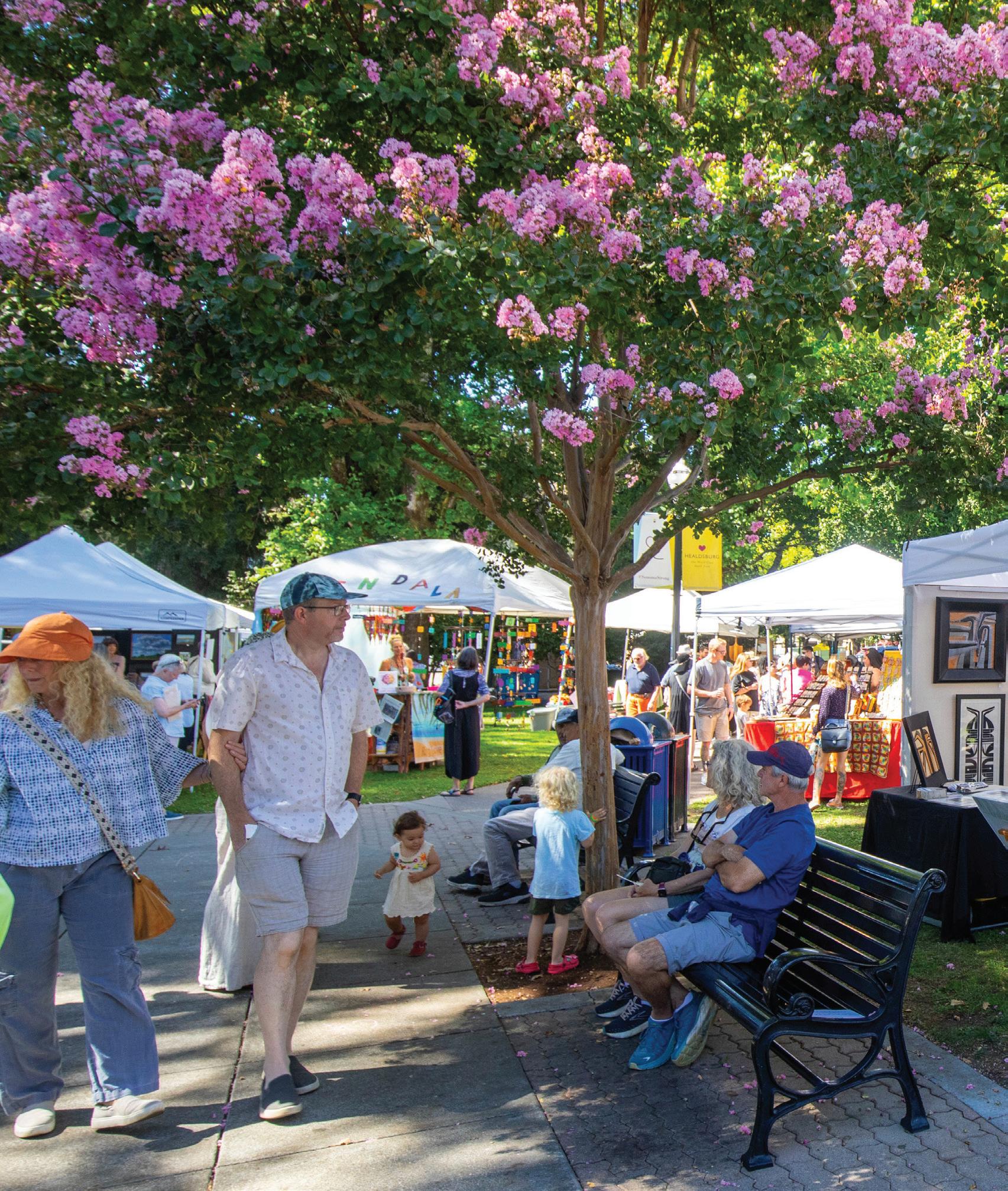 The Healdsburg Plaza welcomes fall with crape myrtle trees in bloom, arts and crafts on display, and locals touring their own annual Healdsburg Arts Festival, now in its 12th year. See story at right …