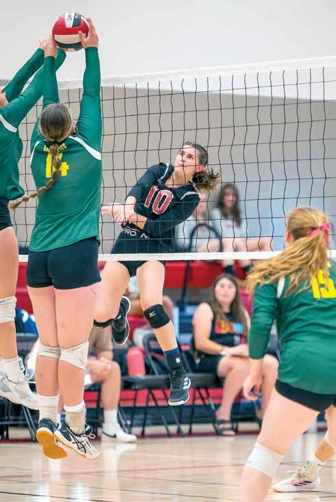 Cotate in their Rohnert Park home gym. While the Cougars have a mixed pre-season record of 5-8, they have been a peren nial force in North Bay Redwood, taking their 8-0 record last year to theButtitle.every year, every team is different, and Mitts thinks he can play a winning hand this season. Last week, the Grey hound girls bested Casa Grande here in Healds burg on Sept. 15, 3-1. “That was a very excit ing match—super high energy, and it was a good one to get going into the league schedule,” said Mitts.Ascheduled rematch with Montgomery on Sept. 12, however, didn’t go as well, as the Grey hound girls were shut out, 3-0. “I didn’t coach to my fullest that evening,” con fessed Mitts. “I take some blame
