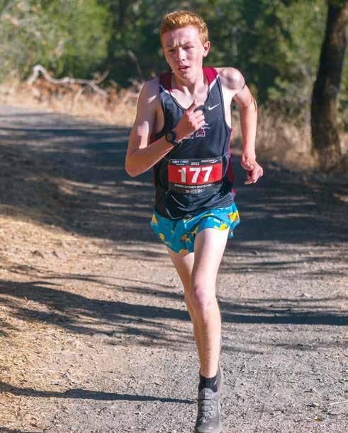 Highlight for Healds burg was Kaeden Ander son, who “flew through the course at a blister ing 10:52 to finish 4th place amongst 435 (soph omore) runners,” said Coach Mike Efram. The Golden Gate sophomore course measures 2.13 miles, though juniors and seniors run a 2.78 course.