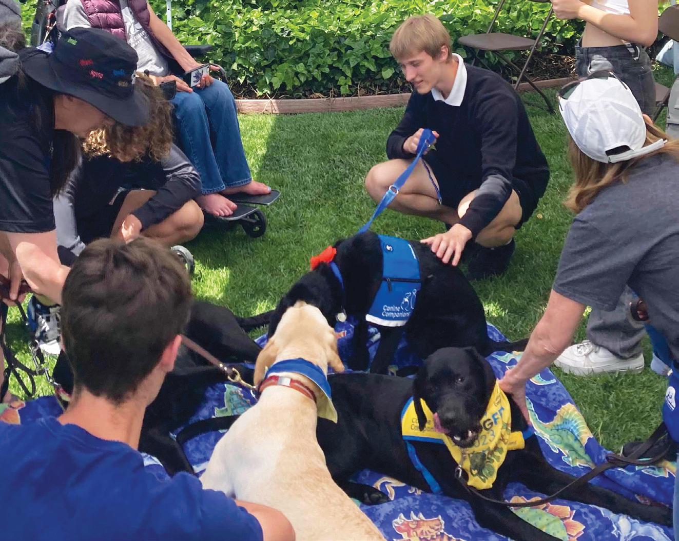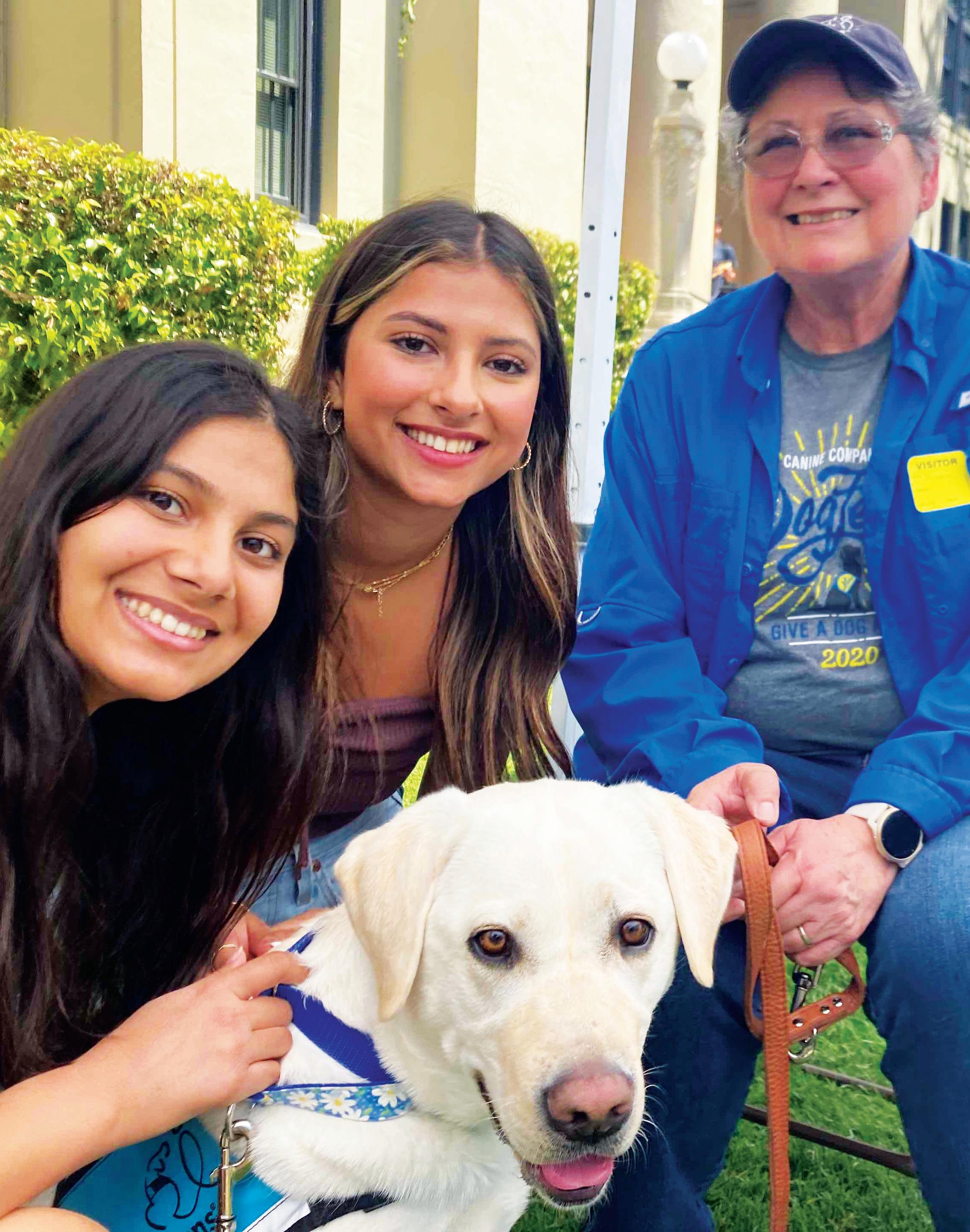 ANTI-STRESS Sophomore Class President Sophia Krish and Sophomore Vice Class President Autumn Wadhwa helped organize the puppy-calming event at Los Gatos High School held during lunch on Friday. Jeanne Lang, a volunteer puppy raiser with Canine Companions, was one of the volunteers who attended. Read the story on P7. Drew Penner / Los Gatan
