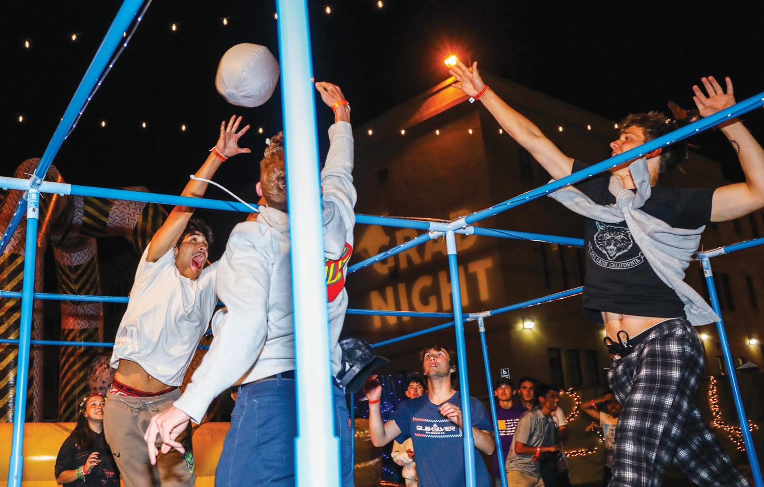 SMASH, NOT SMASHED The “dry” Grad Night festivities at Los Gatos High School on Friday night featured a series of activities and games, such as 9 Square, which were organized into six different destinations, from the Amazon to Casablanca. Seniors had to get their passport stamped at each to be eligible for a grand prize. Turn to P16 for more Grad Night coverage.