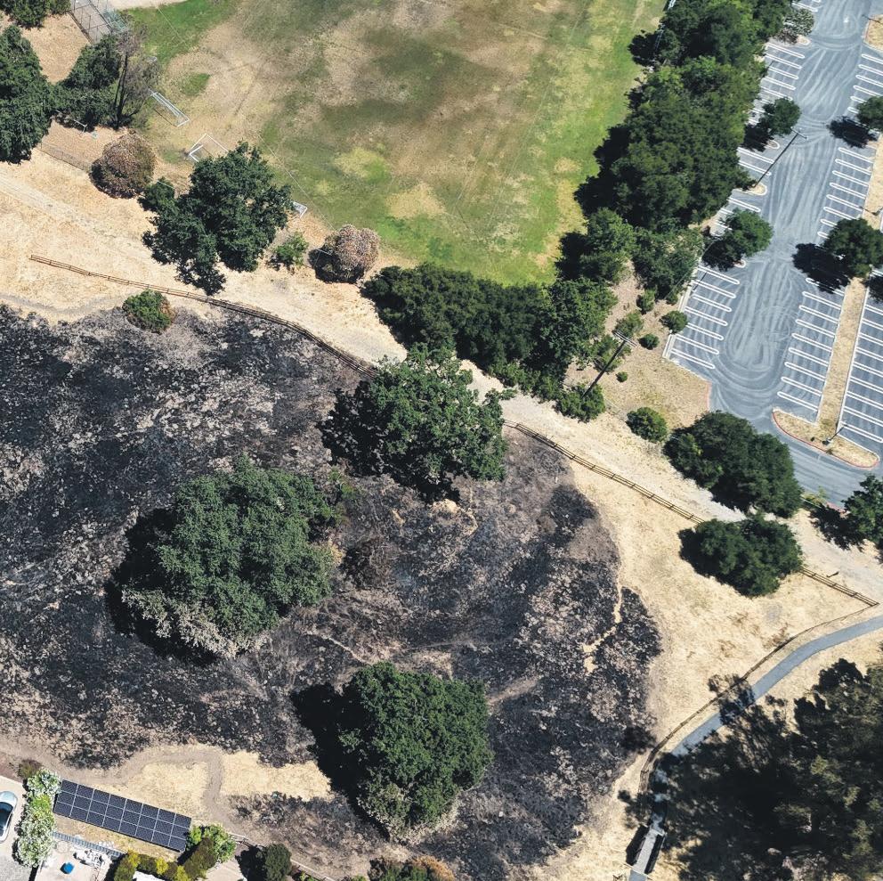 OVERVIEW An aerial view of Mountain Laurel Lane, taken after the fire, clearly demonstrates how effectively the blaze was contained.