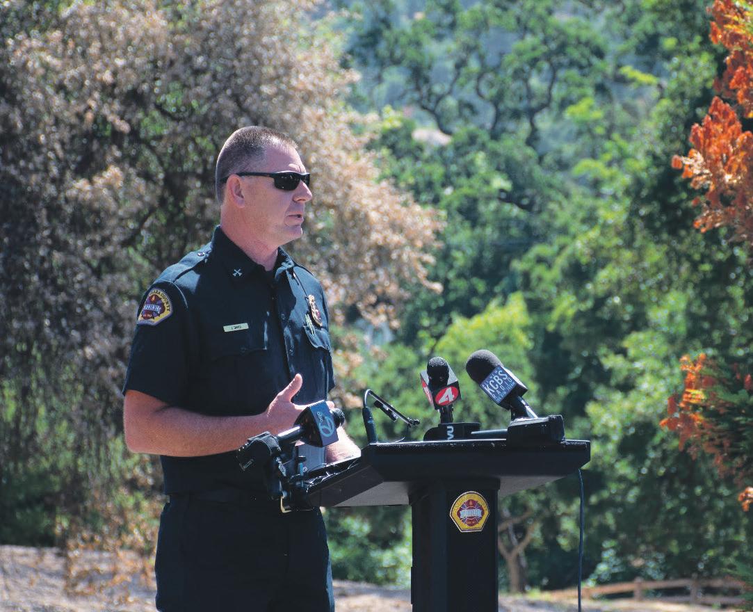 FIREFIGHTERS SCCFD Capt. Matt Mokhtarian looks on as Hazardous Materials