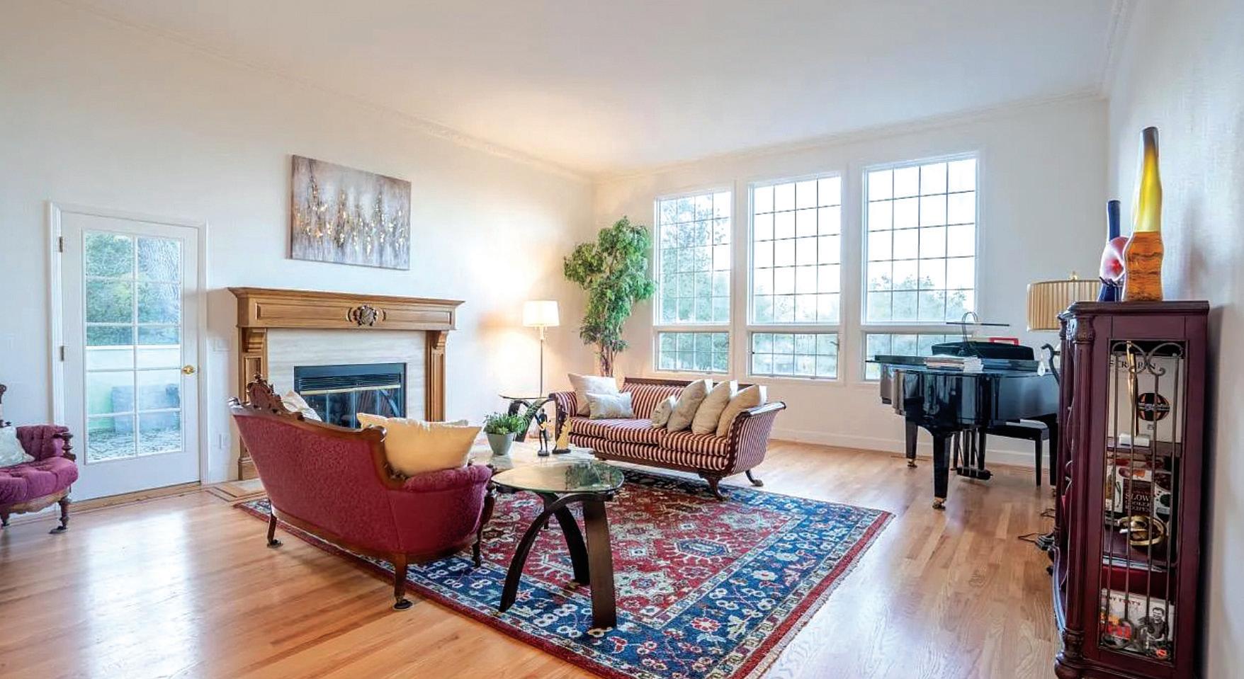 INSIDE Red oak floors with mahogany inlays are throughout.