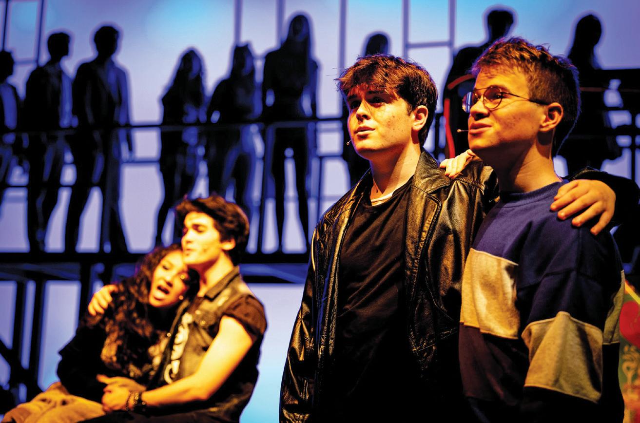 MUSICAL NUMBER Tommy Wilkens (Mark Cohen, from right), Reef Olivo (Tom Collins), Nick Escalada (Roger Davis) and Emilia Rodriguez (Mimi Marques) sing “Finale B.”