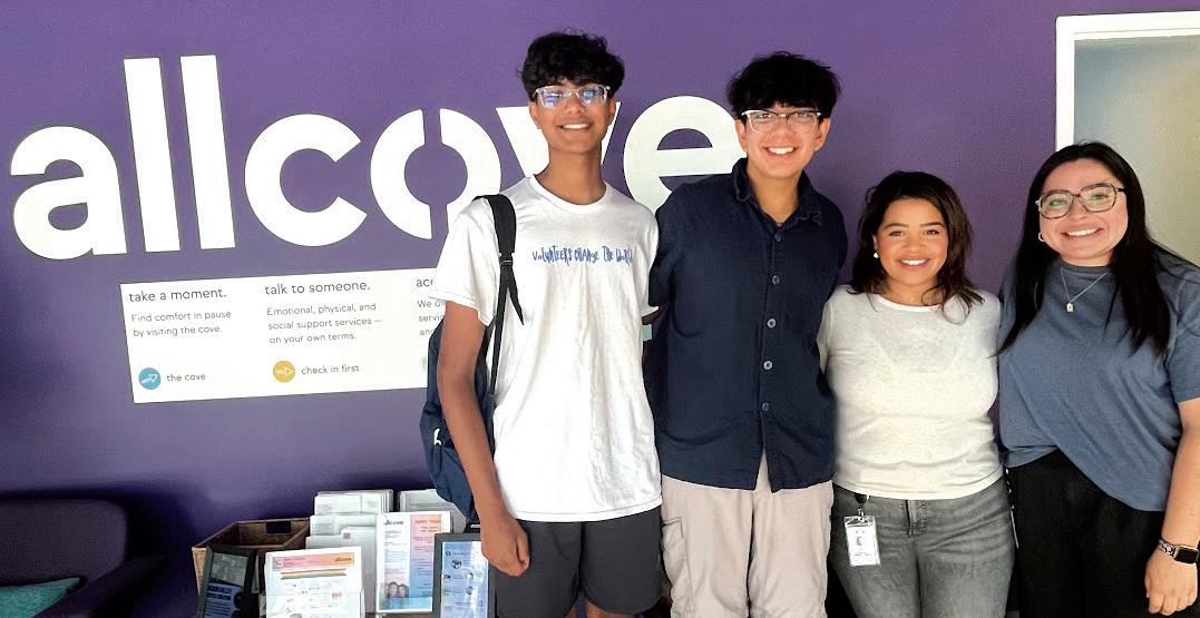 Cutline: WORKSHOP (L-R) Narain Bala and Samay Sikri, representing LIFT, at the Allcove Center in Palo Alto, with Olga Lizama, Allcove program manager, and Sierra Viscaina, Allcove education/ employment specialist, after a financial literacy session in June 2024. (Courtesy of LIFT)