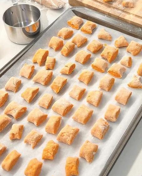 GNOCCHI KEY Place cut gnocchi on a tray lined with parchment to rest. Then it’s ready to cook!