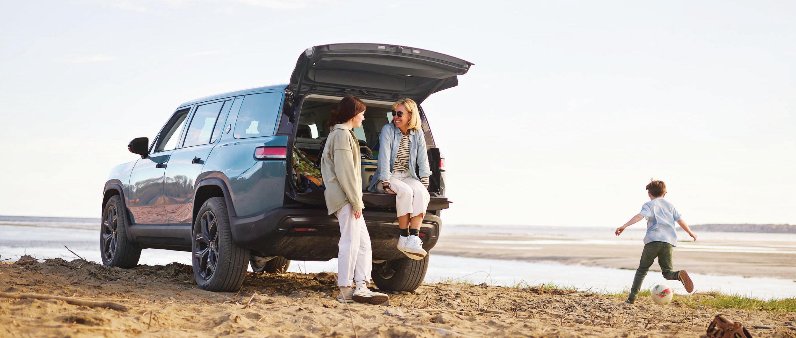 Rivian R1S SUV combines screen controls with old school power. 27