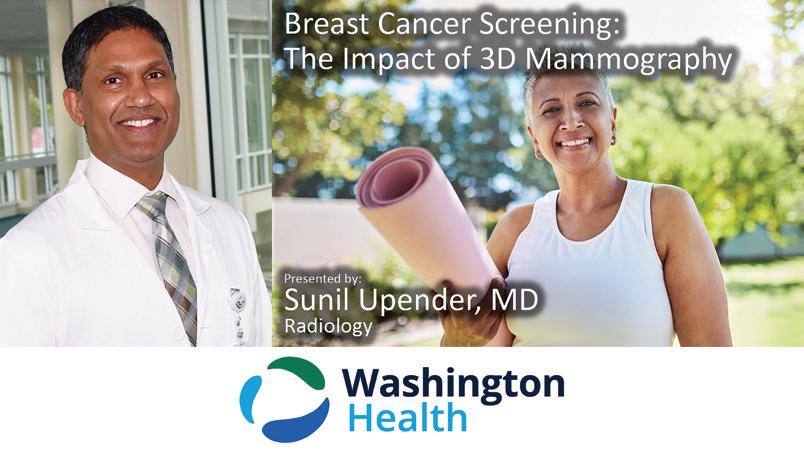 “Breast Cancer Screening: The Impact of 3D Mammography” airs Oct. 8 at 5 p.m. It can be viewed at Facebook.com/WashingtonHealth1, or on YouTube.com/@Washington_Health.