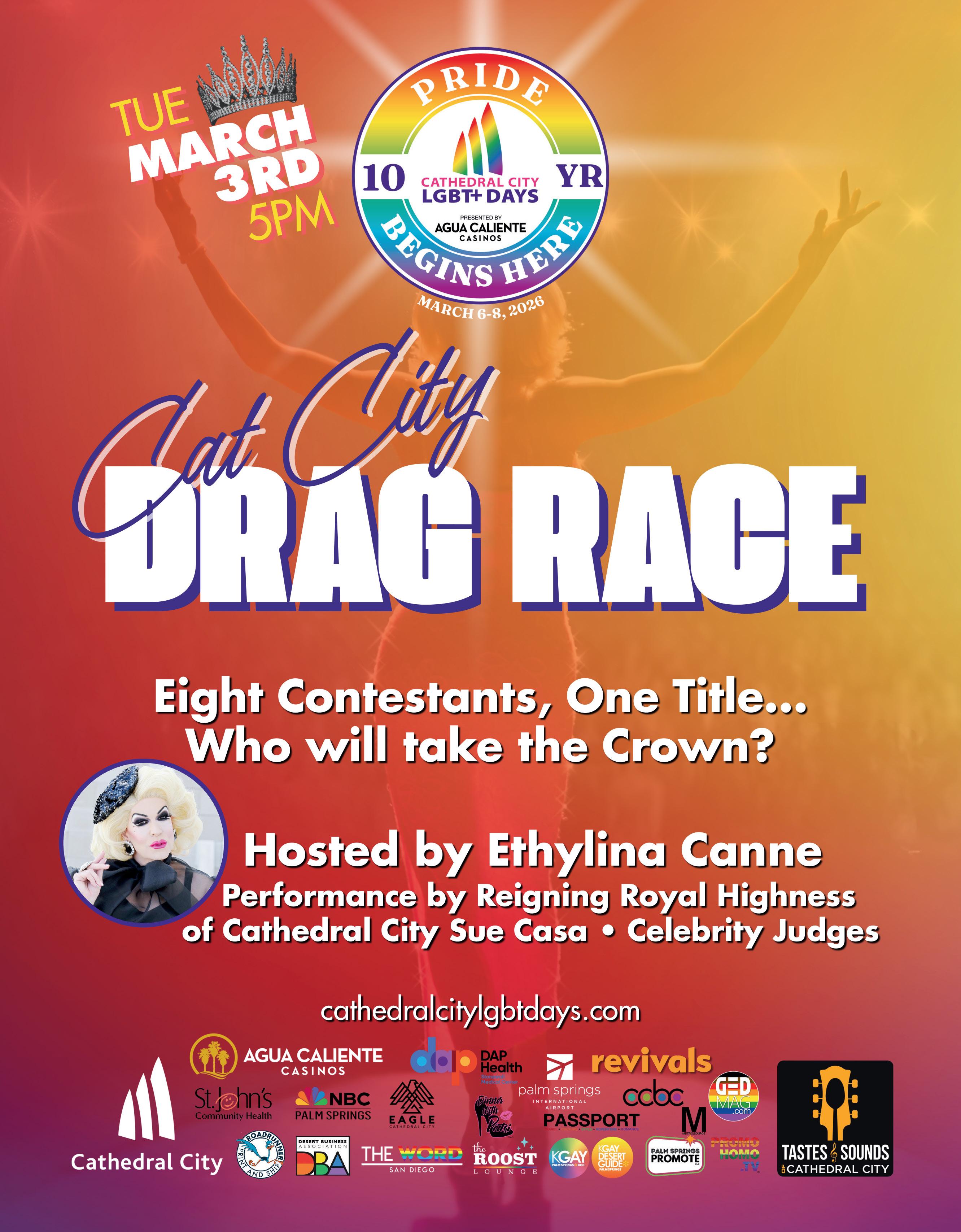 IF YOU’RE READY TO KICK OFF PRIDE SEASON, YOU BETTER GET THOSE CALENDARS OUT RIGHT NOW, BECAUSE CALIFORNIA’S VERY FIRST PRIDE CELEBRATION OF THE YEAR IS BACK—AND THIS TIME, IT’S GOING BIGGER THAN EVER. They aren’t just celebrating another year; they are celebrating a decade of pride, progress, and community. It’s the Tenth Anniversary of Cathedral City LGBT-plus Days, and the Coachella Valley is the place to be from Friday, March 6th through Sunday, March 8th!
