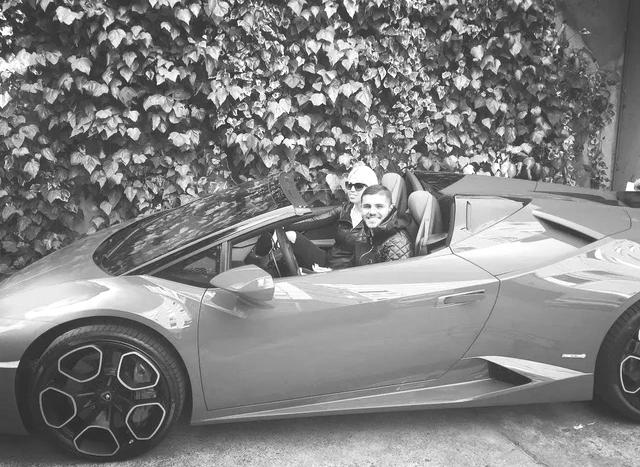 Mauro Icardi và vợ Wanda trên chiếc Lamborghini Huracan Spyder. Ảnh: The Sun.