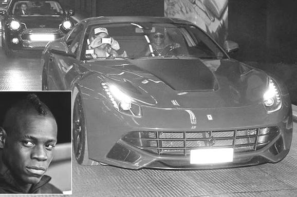 Mario Balotelli cầm lái chiếc Ferrari. Ảnh: Daily Mail.
