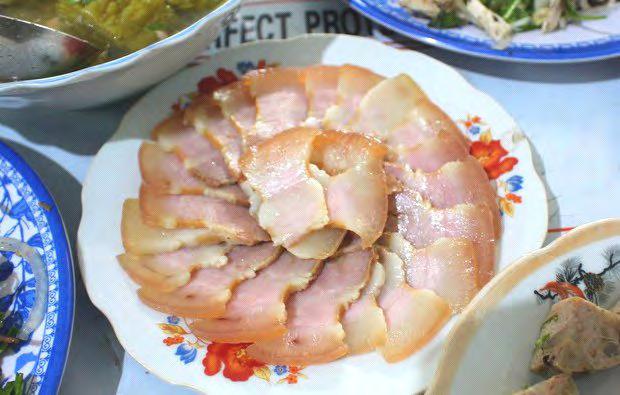 thịtheongâmnướcmắmcuốnbánhtráng, rau sống, dưa chua, chấm với nước mắm chanhtỏiớtănnomàvẫnkhôngngán.