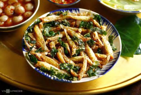 Một đĩa cá bống chiên vàng ruộm giòn tan, khi ăn cuốn cùng lá lốt bùi thơm chấm đẫm vàonướcmắmchuangọtrấthaocơm. Bòxàolálốt