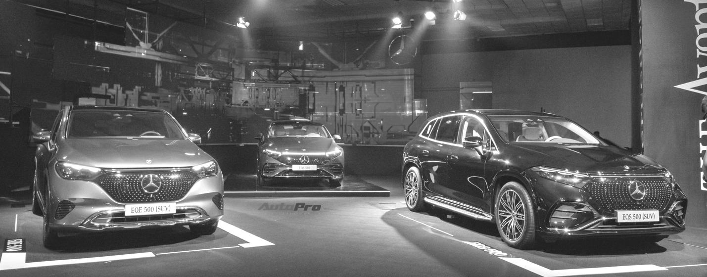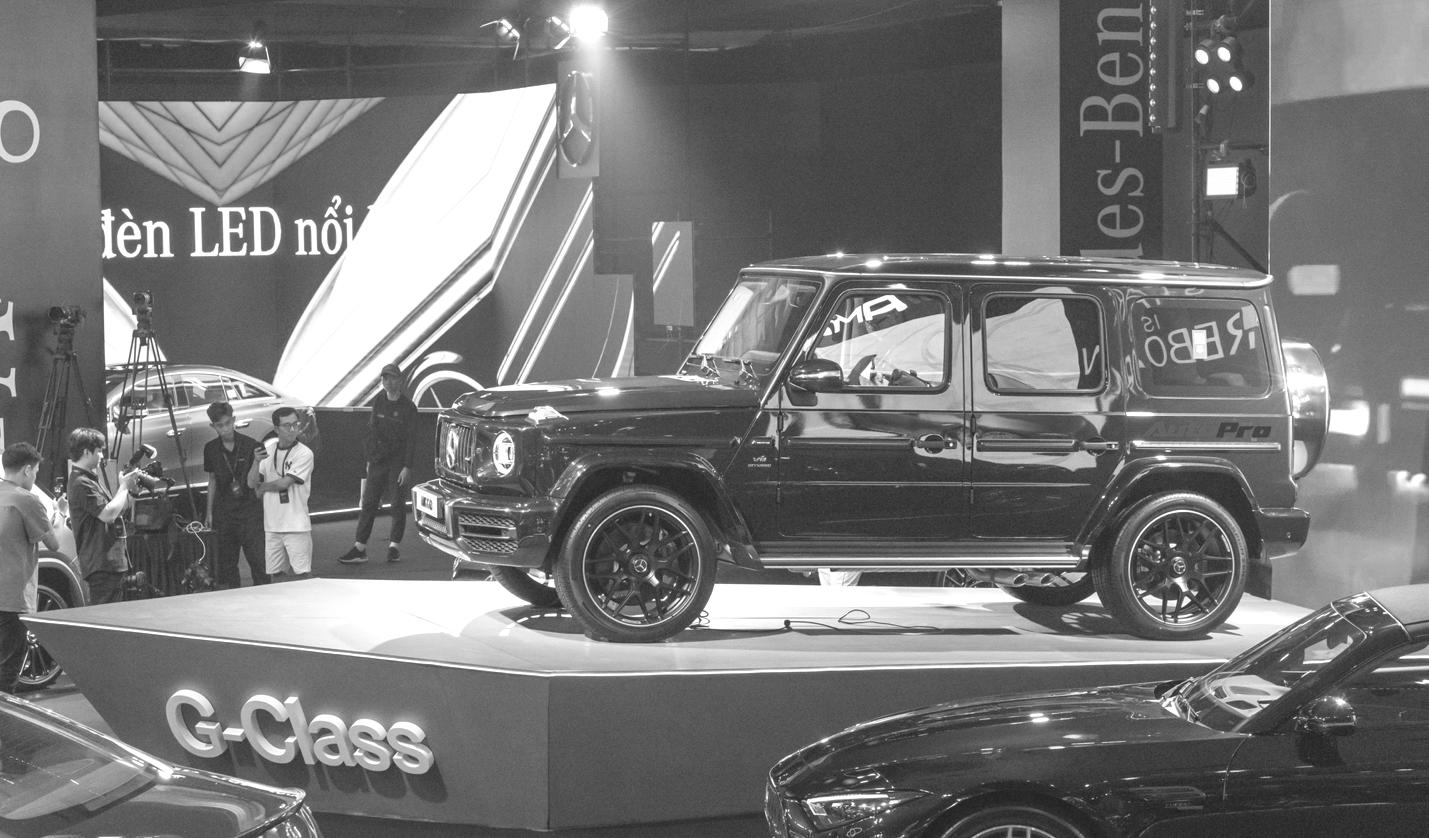 Chiếc Mercedes-AMG G 63 được đặt ở trên khu vực bục caonhất,hướngtớitínhđịahìnhcủadòngSUV TiếpđếnlàkhuvựccủadòngxeđiệnMercedes-EQ.Hãng quyếtđịnhtrưngbàybachiếcgồmEQS5804Maitc,EQE 500SUVvàEQS500SUV Điểmchungcủacả3chiếcxe thuầnđiệnnàylàtầmvậnhànhtrên500km/lầnsạc.