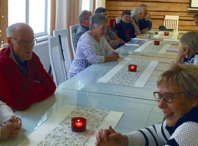 Tuikkujalaitettiin pöytiinvalaisemaanjaparijoululaulualaulettiin,vaikkeisanojamatkassaollutkaan.Kuulumisia vaihdettiinja haastettiinsuu makiaks.