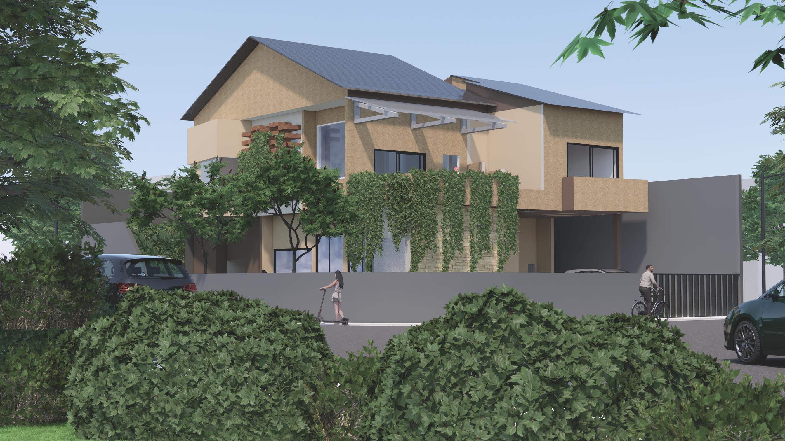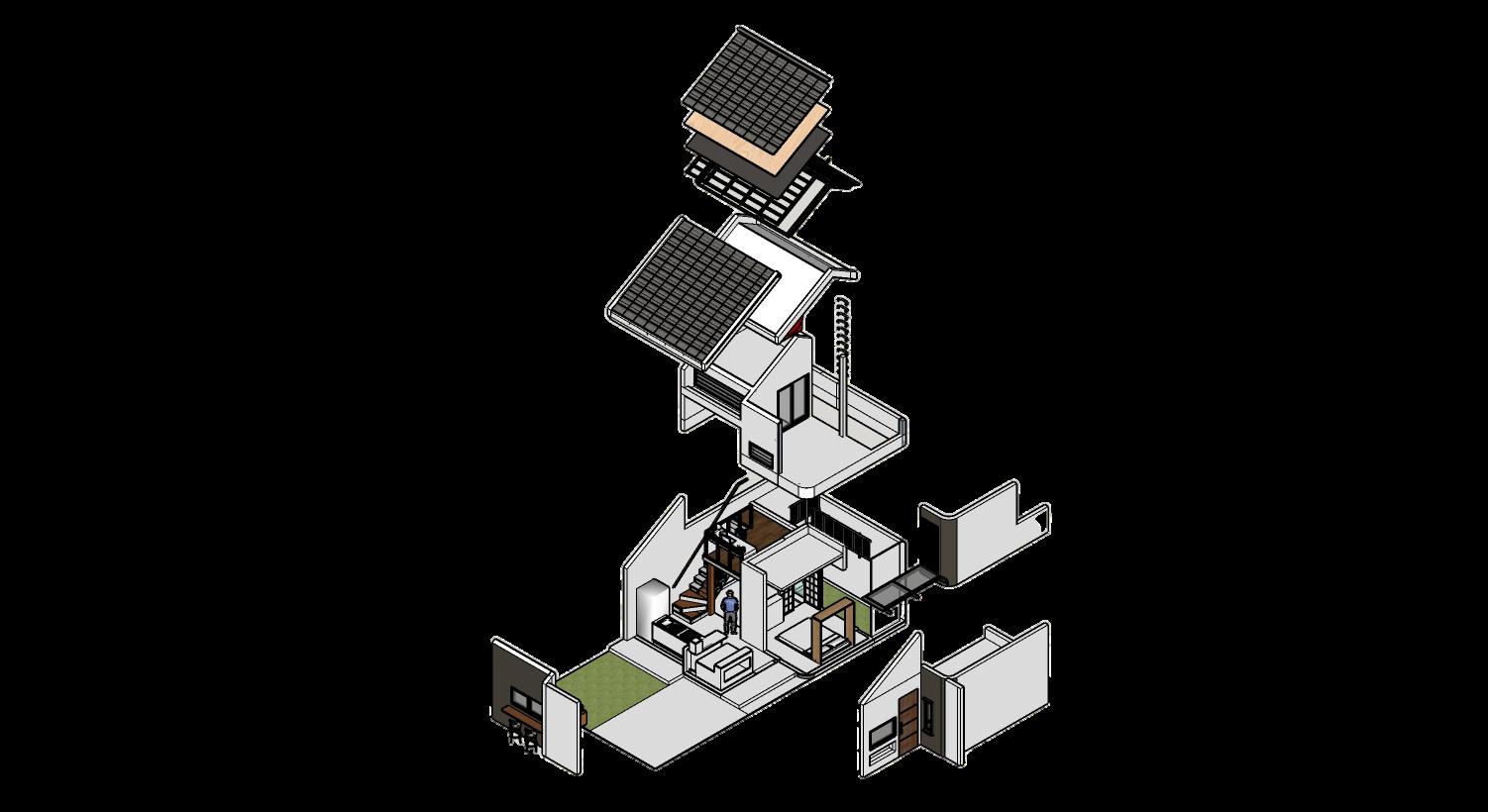 a Japanese-style home, the primary element to strive for in the midst of the city's rush and bustle This building, which is home to a family of four, has several features such as a home theater, gaming room, andBBQareaforfamiliestorelax