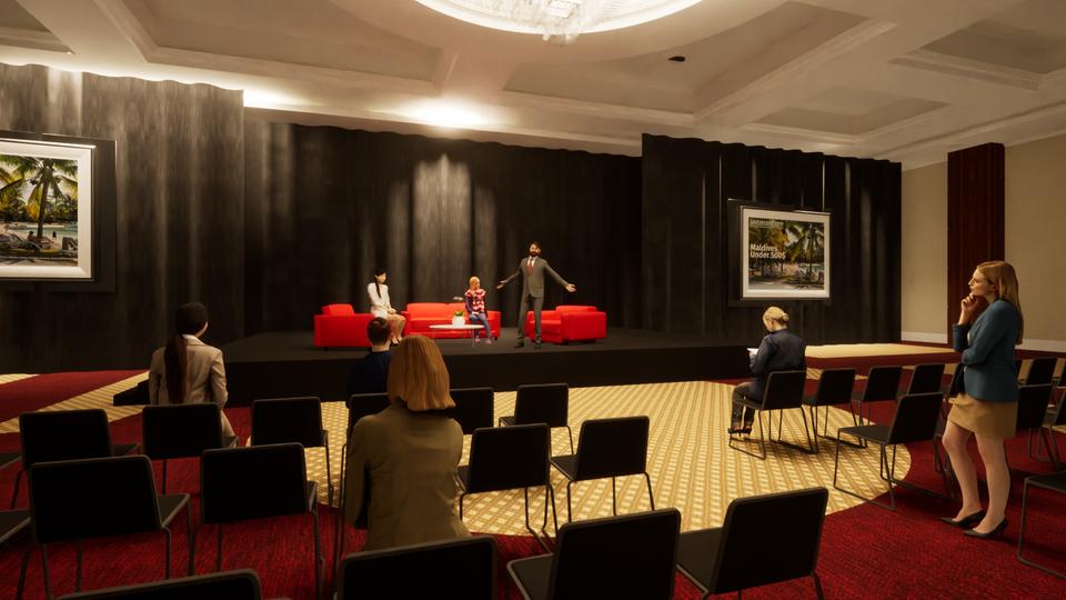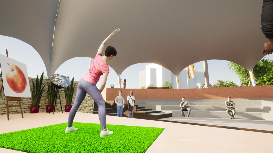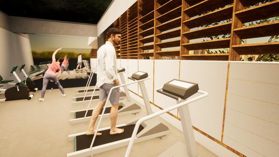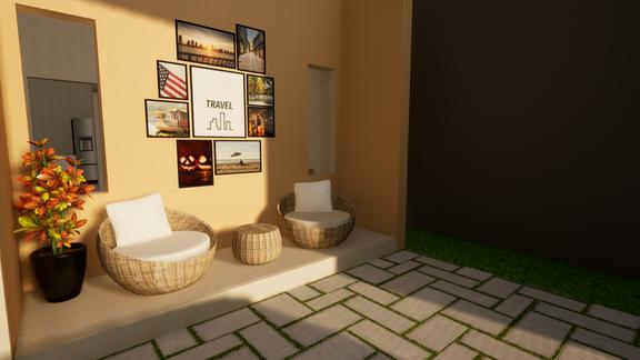 A gaming area that offers games that can be played by more than one person at the same time Given access to the gazebo and swimming pool so they are able to interact directly