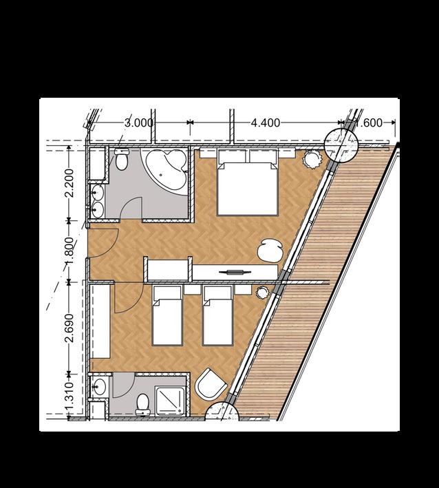 Offers direct view of the sea and two accessible balconies Consists of 1 king bed and2twinbedwithconnectingdoorinside