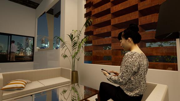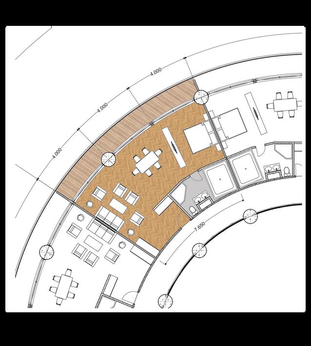 Provides a direct view of the city and large skyscrapers There is a living room, a dining room,andajacuzzi
