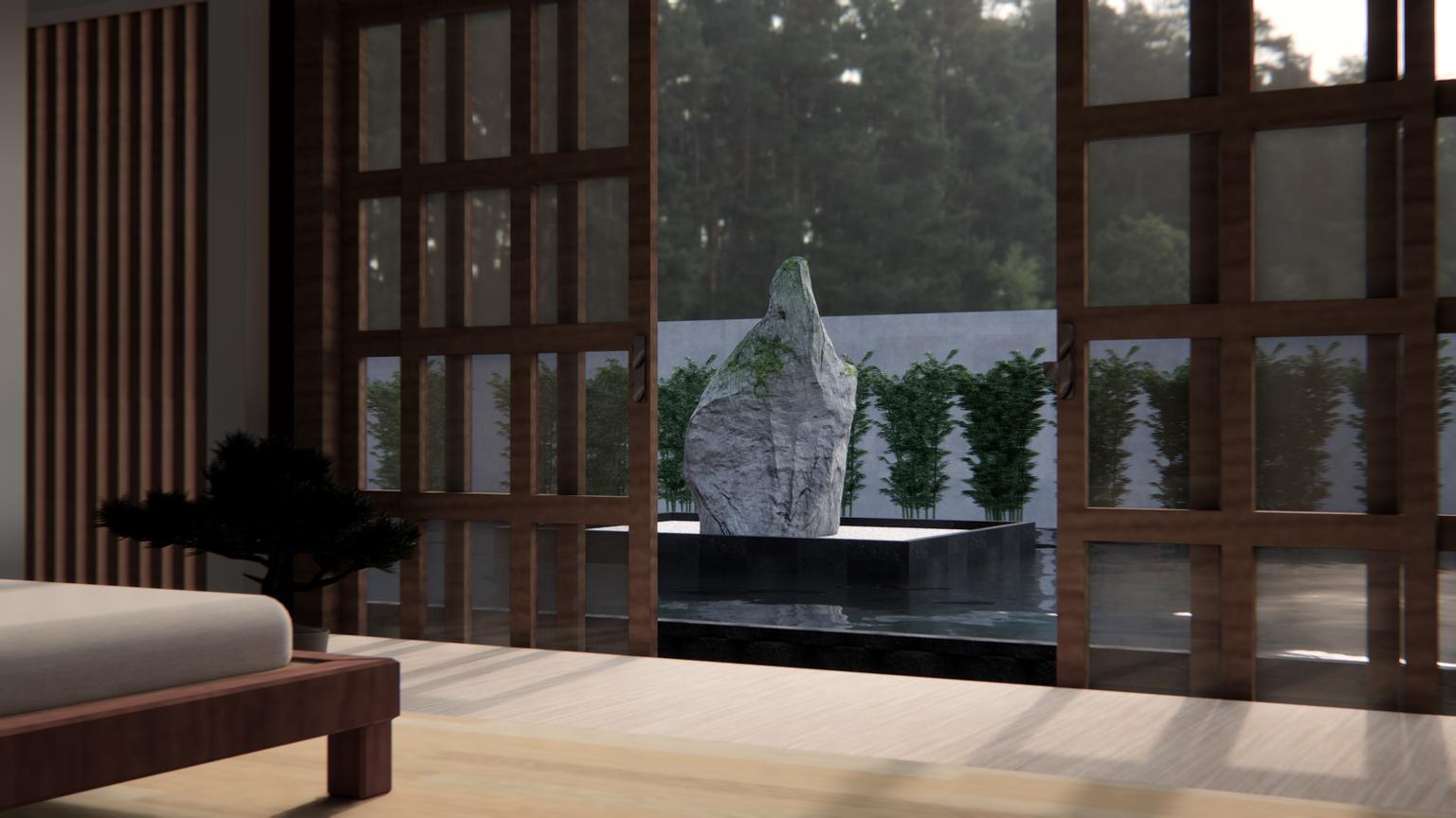 Because the front facing the road faces westward, there aren't many openings into the buildings The back of the site offers a wonderful view of the mountain and is utilized as a private spot to rest while enjoyingthesceneryandthemorninglight