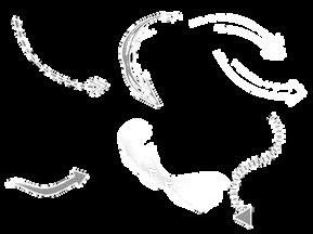 The direction of pressure moves through the fabric, passed to the discs and wires Then forwardedtofootplate